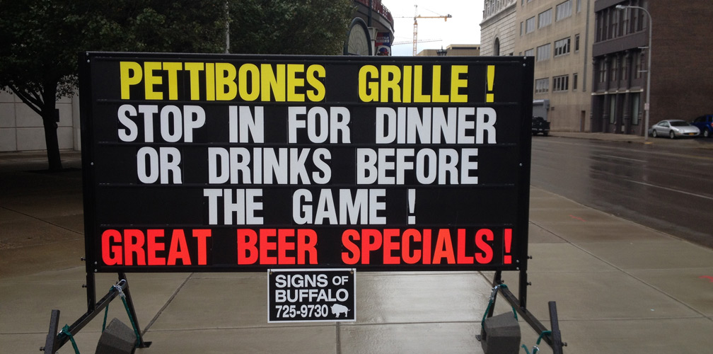 Signs of Buffalo offers a cost-effective way to advertise. Compared to traditional media, portable black signs deliver better ROI. Eye-catching and budget-friendly, they convey your message in seconds. Let us help you promote your business effectively.